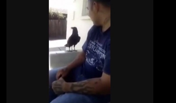 Όπως θα δείτε στο βίντεο, ο άνδρας μιλάει γλυκά και ευγενικά στο μαύρο κοράκι, που στην αρχή το παίζει δύσκολο, αλλά μετά τον πλησιάζει και του λέει στα αγγλικά "άντε γ@μ@σου"! newsit.gr
